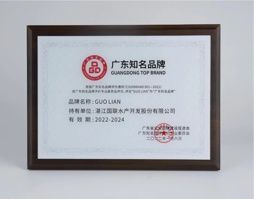 荣获广东知名品牌!国联水产入围广东品牌强国先行工程,彰显品牌实力!